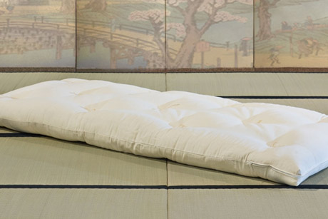 Stendi sui tatami un futon sottile, da 6 oppure 8 cm: questi futon sono ideali per la meditazione, per fare stretching o per praticare Shiatsu o altri tipi di massaggi. In più, se vorrai lasciare libera la superficie dei tatami e liberare lo spazio, un futon sottile può essere arrotolato e messo da parte.
