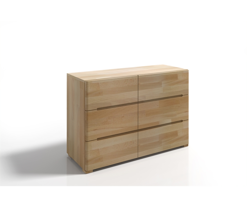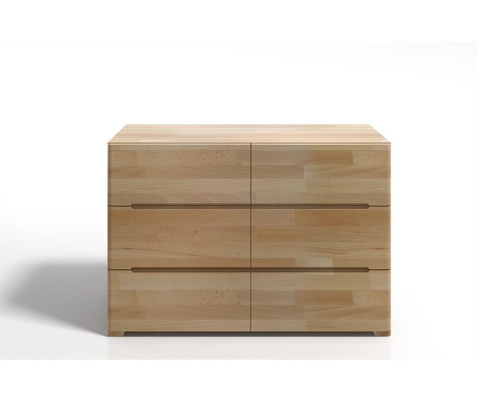 Cassettiera in lamellare di faggio massiccio con cinque o sei cassetti.