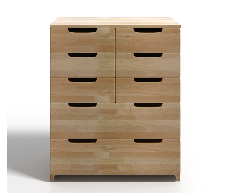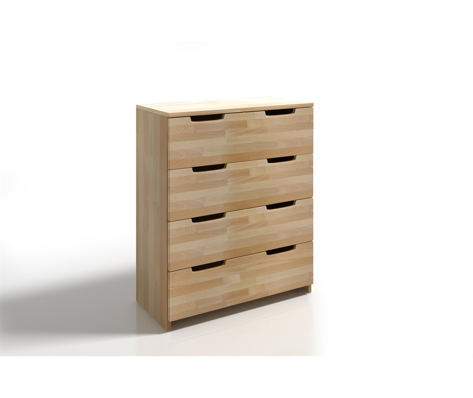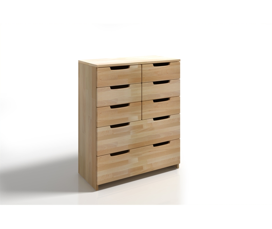 Cassettiera in lamellare di faggio massiccio disponibile con quattro o con otto cassetti. Altezza 100 cm, larghezza 83 cm, profondità 40 cm.