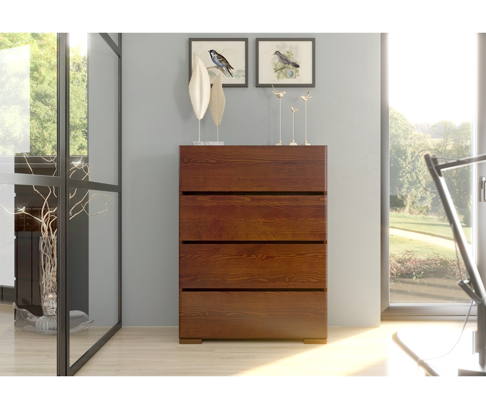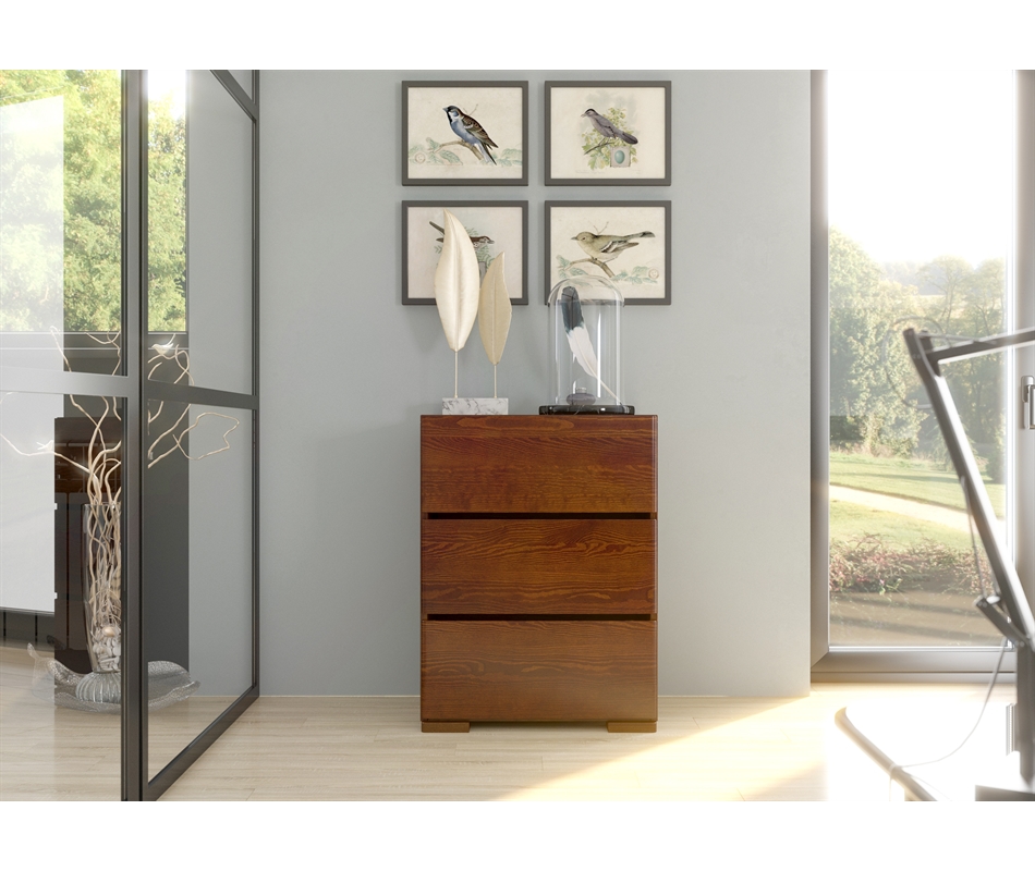 Cassettiera in lamellare di pino massiccio disponibile nella versione con tre o quattro cassetti. Altezza 108/81 cm, larghezza 80 cm, profondità 45 cm. Lo spazio sotto il mobile è di 2,5 cm mentre lo spessore del legno 2 cm. La tecnica del lamellare permette di eliminare nodi ed impurità, creando un prodotto dall'aspetto quanto più possibile omogeneo e uniforme. Mobile dipinto con vernici ecologiche, è possibile richiedere vari colori, come Naturale, Palissandro e Noce. Sono presenti delle par...