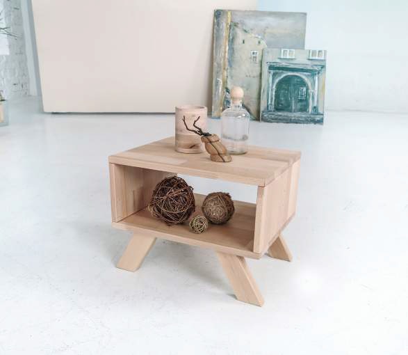 Comodino estremamente semplice, che si abbina perfettamente sia al letto Nova che al divano omonimo come tavolino laterale. Misure Larghezza complessiva: cm. 51 cm Larghezza ripiano: 45 cm esterna - 41 cm interna Profondità: cm. 35 Spessore piedi: cm. 6 Altezza complessiva: cm. 34 Altezza ripiano: cm. 20 esterna - cm. 16 interna Colorazione naturale, realizzata con olio di lino. Comodino biologico, realizzato con parti metalliche essenziali.