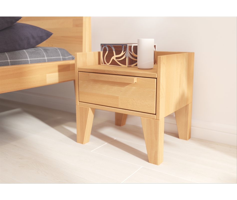 Comodino in lamellare di faggio massiccio . La tecnica del lamellare permette di eliminare nodi ed impurità, creando un prodotto dall'aspetto quanto più possibile omogeneo e uniforme. Altezza complessiva 44 cm, profondità 34 cm, lunghezza 40 cm. Mobile dipinto con vernici ecologiche. E' possibile acquistare su ordinazione i colori non presenti tra gli articoli del prodotto. Il pannello inferiore del cassetto è realizzato con una tavola di HDF bianco. Si tratta di fibra di legno realizzata da fr...