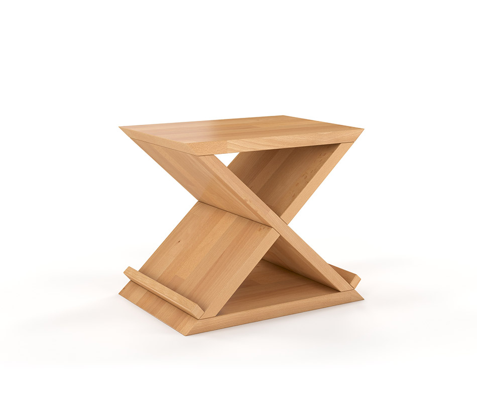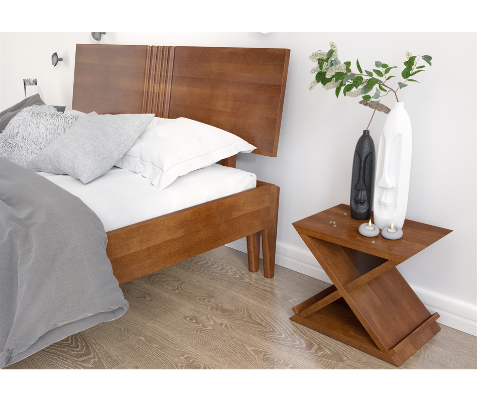 Il comodino Radici in lamellare di faggio massiccio con la sua forma a clessidra ha un design che si accosta sia all'arredamento zen che a quello moderno. Può dunque essere abbinato a tutti i letti della linee Varsavia e Japandi.