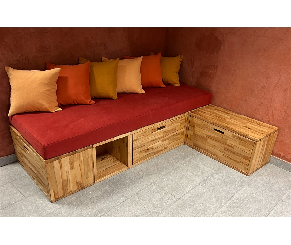 Divano Letto artigianale con cassetti in faggio lamellare (componibile ad hoc)