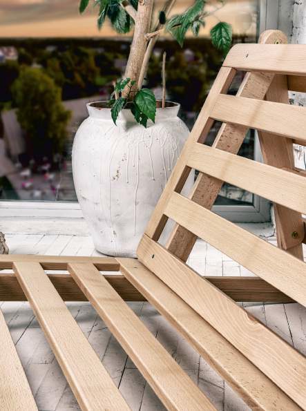 Divano letto in legno di faggio.