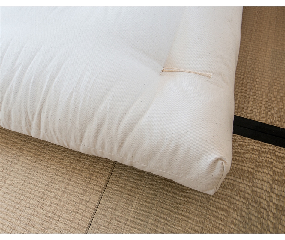 Futon formato da 3 strati di cotone rilavorato. Altezza 8 cm. Rivestimento in cotone 100% colore naturale. Cerniera d'ispezione. Indicato per l'uso come base per i trattamenti, meditazione o come base per divano letto. Il cotone rilavorato è ottenuto ricardando i pezzi in eccesso delle falde tagliate per la realizzazione dei futon. Il tatami e i cuscini non sono compresi nel prezzo.