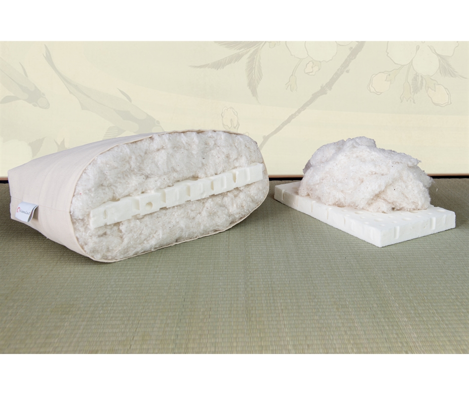 Futon realizzato con cotone 100% naturale e lattice. Formato da 1 str. di cotone, 1 str. di lattice, 1 str. di cotone. Altezza 11 cm. Rivestimento in cotone 100% colore naturale. Cerniera d'ispezione. Indicato per l'uso come materasso. La lastra in lattice, bilancia la rigidità del cotone, conferisce al futon più comfort ed implica una minore manutenzione per la sua indeformabilità. La foto del prodotto è una sezione del futon