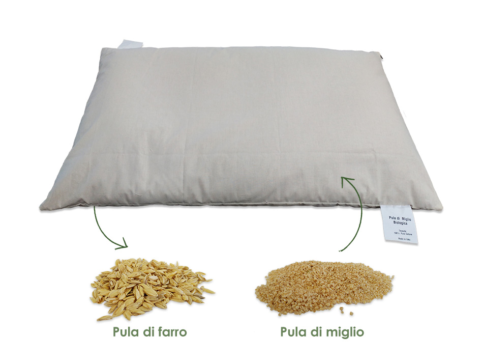 Cuscino anatomico e traspirante, sostiene il collo e si adatta perfettamente alla nuca. Un lato del cuscino ha l'imbottitura in miglio, l'altra metà in farro. I due pezzi sono collegati tramite una cerniera. Misure 50x80 (cm). Caratteristiche generali Tessuto di rivestimento in puro cotone 100% non trattato, dotato di cerniera d’ispezione. Trattandosi di un prodotto artigianale in fibre naturali, lo spessore può variare abbastanza da un articolo all'altro. Mediamente i cuscini appena realizzati ...