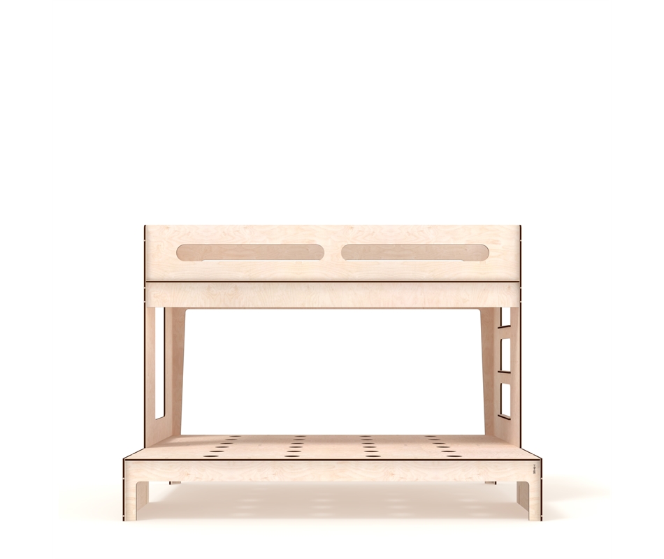 Letto a castello in multistrato di betulla da 12 mm di spessore, versione matrimoniale disponibile in due dimensioni (160 x 200 e 140 x 200).