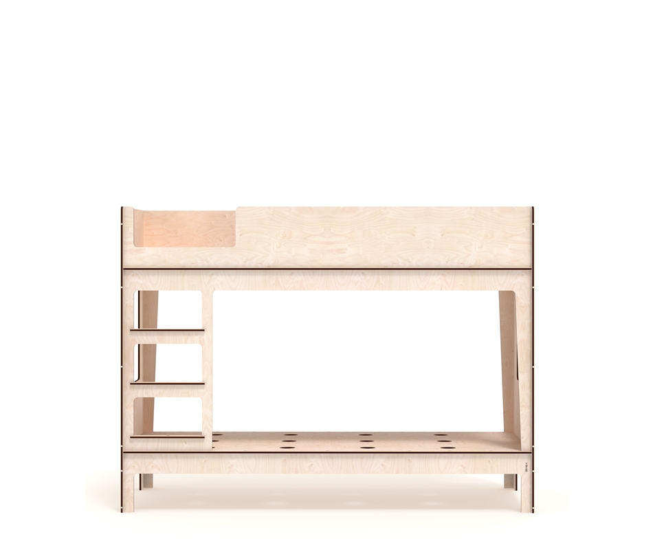 Letto a castello in multistrato di betulla di 12 mm di spessore, composto da 2 elementi verticali che portano le 4 fasce di supporto delle reti del letto, formate da 2 piani in multistrato traforato, i cui fori hanno la funzione di garantire la corretta traspirazione del materasso. Il letto a castello L8 è pensato per contenere dei futon (in cotone o cotone e fibra di cocco o cotone e lattice) da 80x200 cm. La scaletta è inclusa ed è ricavata da un pannello, si fissa alla struttura mediante due...