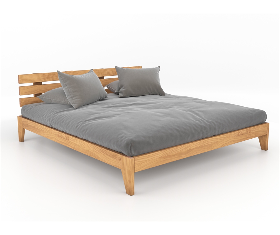 Argan è un letto dal design calibrato e semplice, dalle linee geometriche ed essenziali. Può essere corredato con una solida testiera in legno, con tre liste di legno accostate, oppure a staccionata.