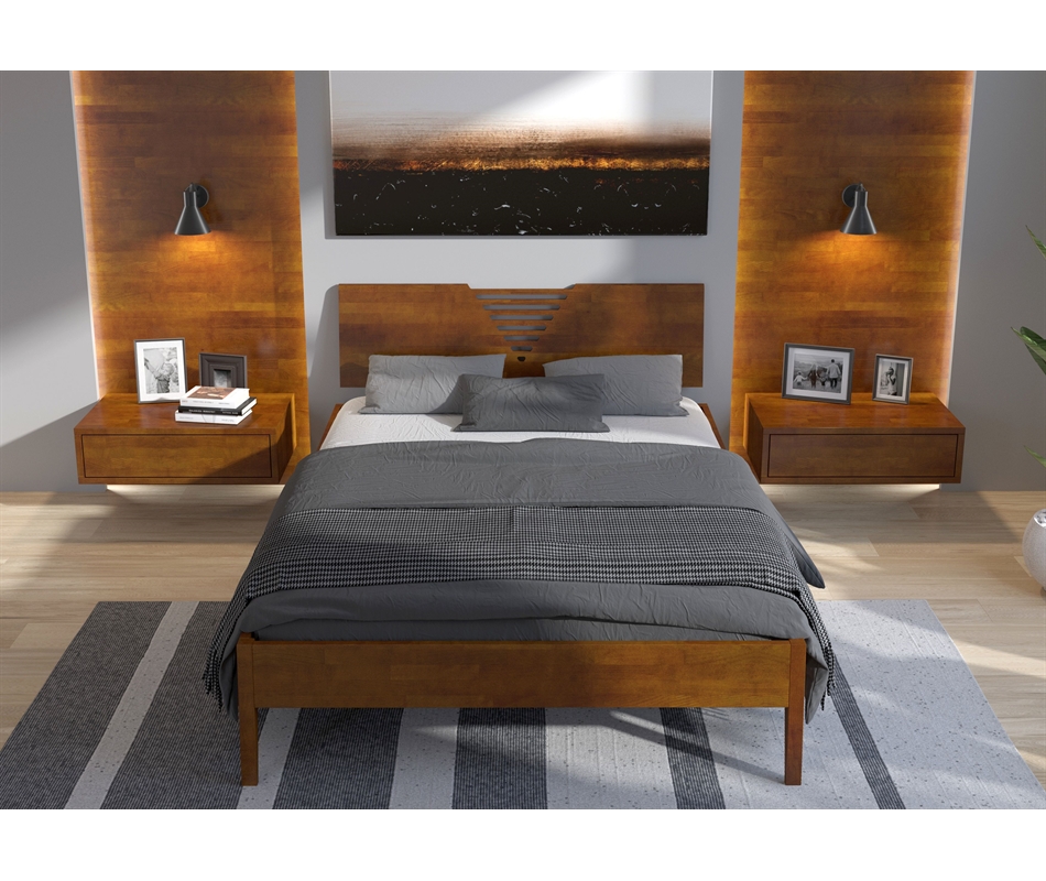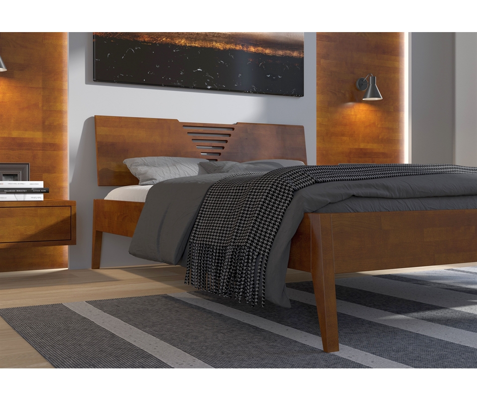Le linee del letto Nirvana sono molto semplici, ma il decoro realizzato con una V e delle liste orizzontali della testata dà nuova vita a qualsiasi stanza.
