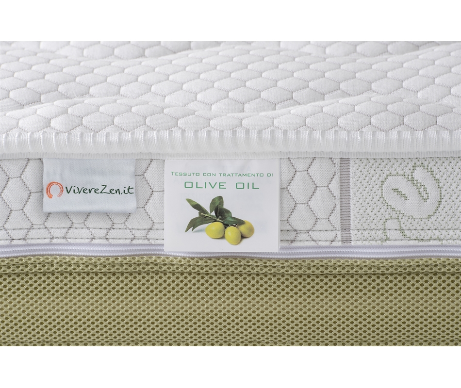 Altezza complessiva 21 cm - Portanza: media. Completamente sfoderabile. Fodera all'Olio d'Oliva. Lastra a 7 zone differenziate, spessore 18 cm. Materasso in lattice naturale - densità 75 kg/m3 I numerosi alveoli nelle lastre dei materassi in lattice garantiscono una costante ventilazione, il riposo è ergonomico. Il materasso viene spedito arrotolato sottovuoto. *Olio d'Oliva* Fodera trattata in un bagno di essenza all'olio di oliva, che conferisce al tessuto proprietà antiossidanti e antibatte...