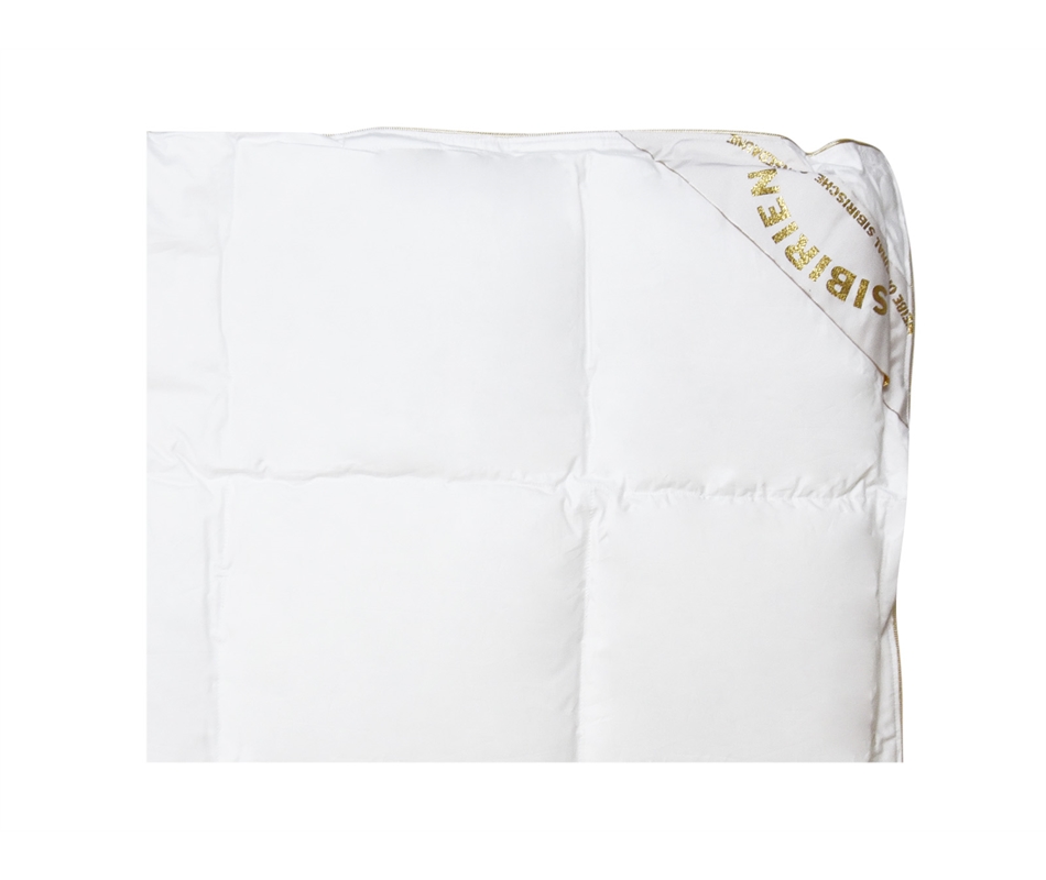 Piumino d'oca, 2 punti di calore, 100% piumino bianco Siberia, rivestimento 100% cotone ca. 90 gr/m2 colore bianco, confezione in busta di cotone inclusa.