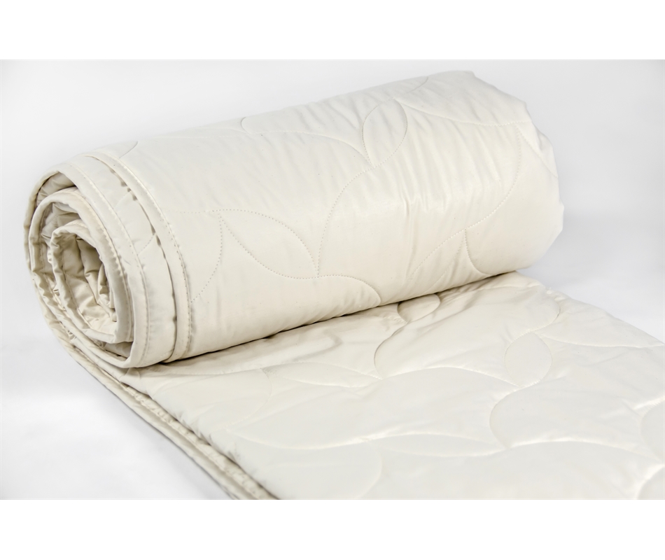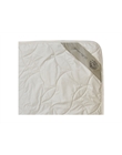 Trapunta, 2 punti calore , con rivestimento in tessuto di percalle 100% cotone percalle. La grammatura dell'imbottitura è di 150 gr/mq. Il prodotto si caratterizza come una coperta leggera, adatta per la primavera/estate o ad ambienti molto riscaldati. La fibra di seta ha un'eccezionale resilienza; è molto igroscopica: assorbe fino al 30% del suo peso senza dare sensazione di bagnato. Ha ottime qualità isolanti. Rivestimento in cotone, certificato con marchio Oeko-Tex standard 100, che testimo...