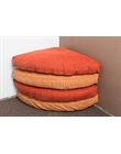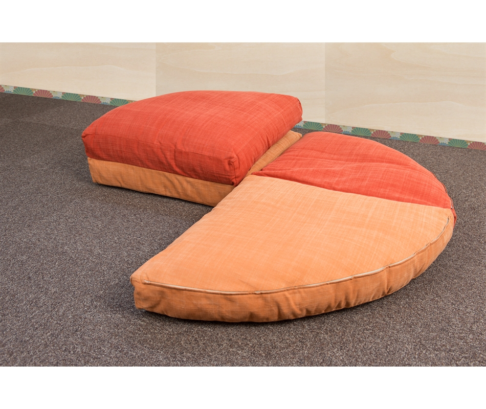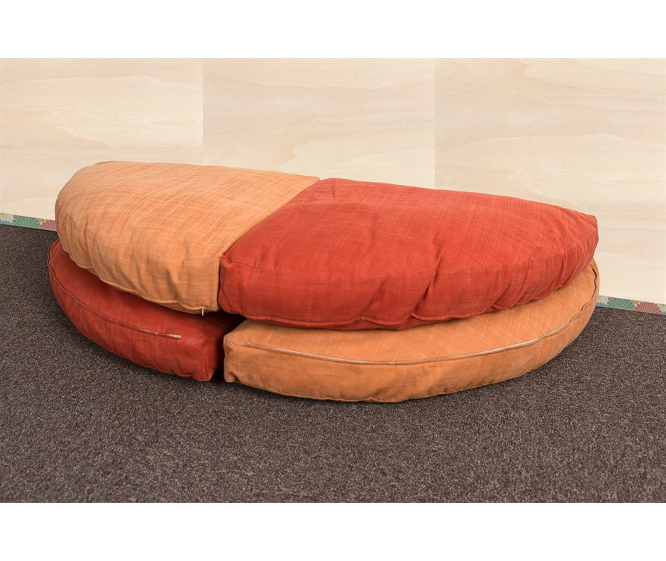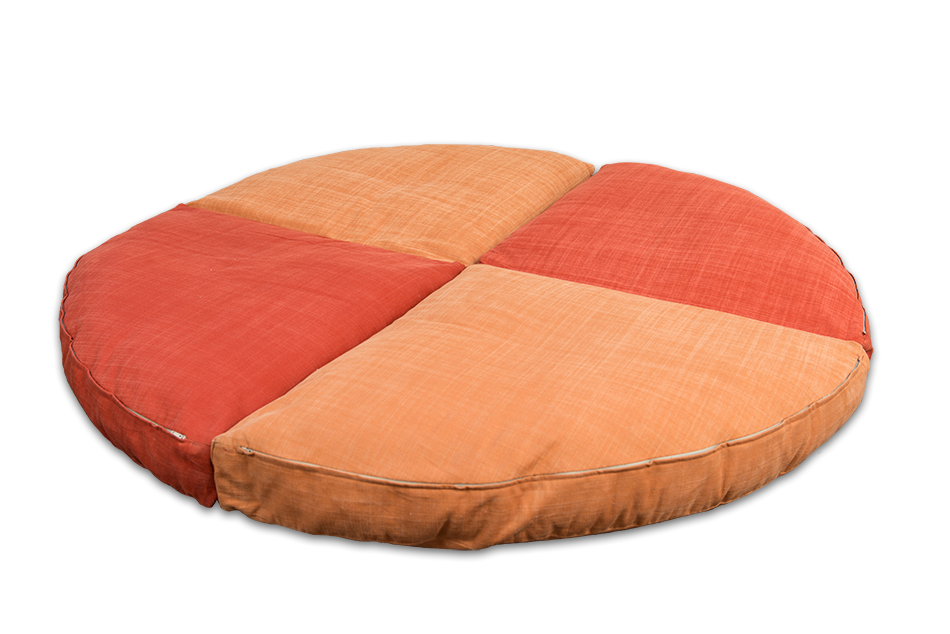 Futon Pouff sfoderabile, composto da quattro cuscini a forma di quarto di luna. Imbottitura 100% cotone. I singoli cuscini misurano 63x63x10 cm, sovrapponendoli uno sopra l'altro si raggiungerà quindi uno spessore di circa 40 cm. Il futon ha un rivestimento non sfoderabile in cotone greggio (color ecrù). In alternativa puoi scegliere di personalizzarlo con un tessuto colorato, sempre non sfoderabile. Il rivestimento è tenuto fermo da laccetti (fiocchetti) bianchi o neri. Se desideri una fodera ...