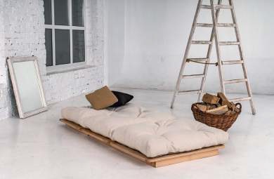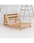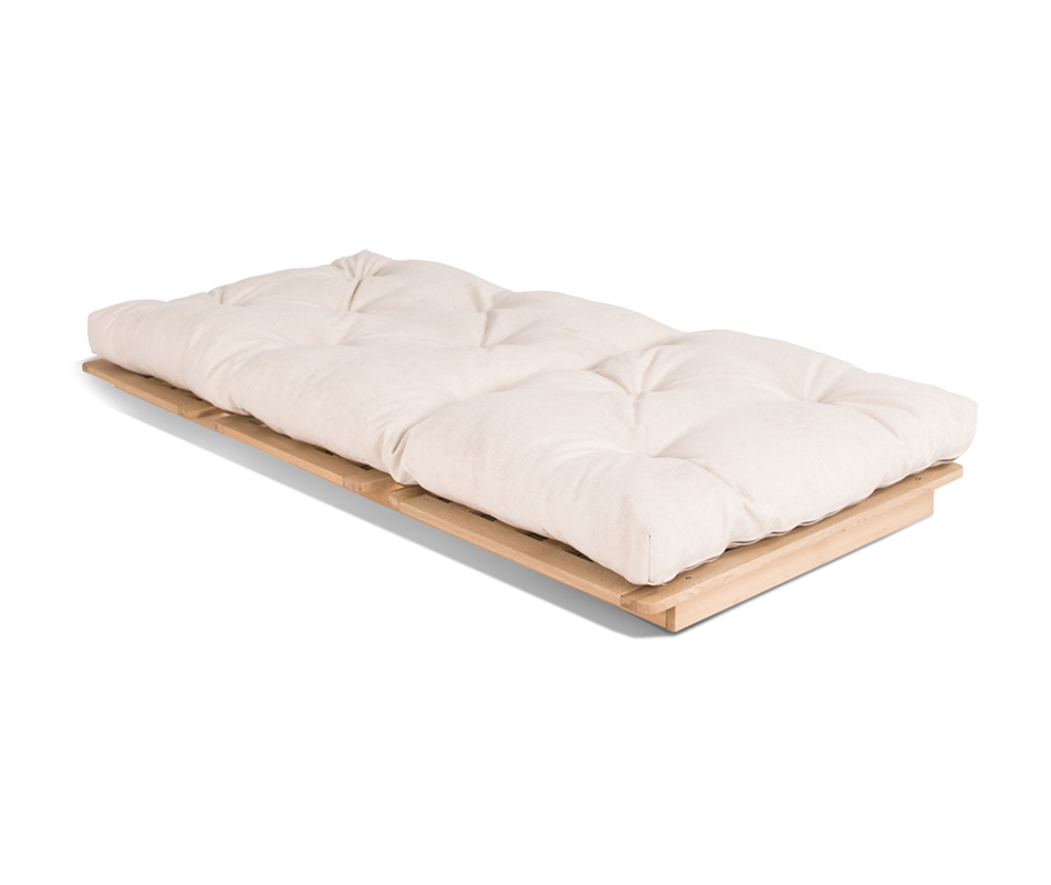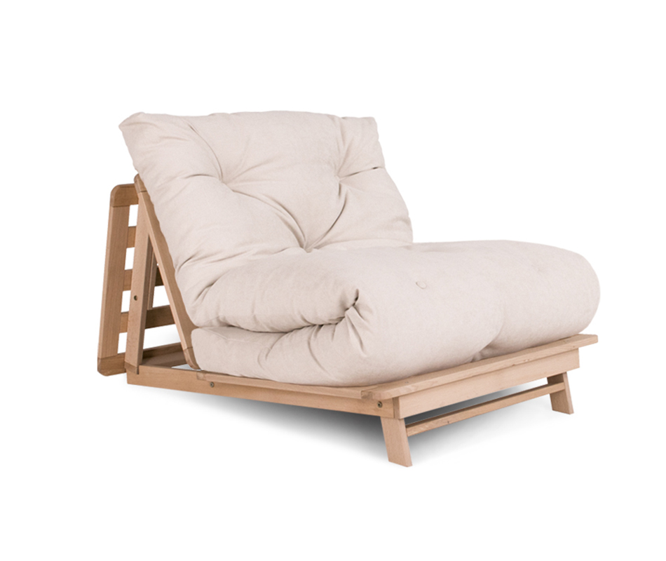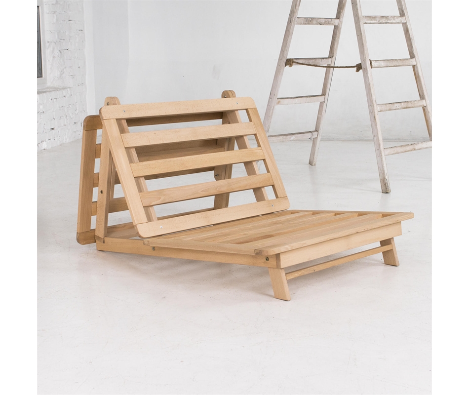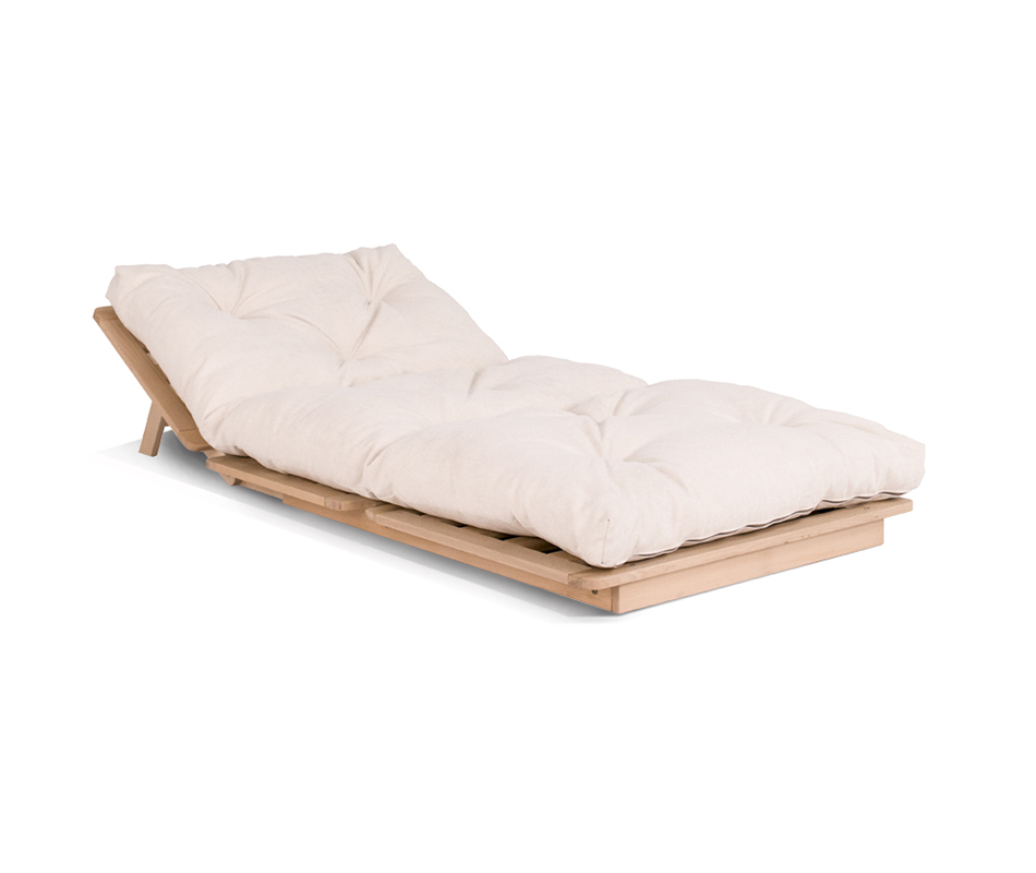 Poltrona letto in legno di faggio. Prodotto estremamente versatile, che si può trasformare, chaise loungue o letto singolo. La poltrona letto Origami viene fornita di serie nelle colorazione naturale, realizzata con olio di lino. Il futon ha un rivestimento non sfoderabile in cotone greggio (color ecrù). In alternativa puoi scegliere di personalizzarlo con un tessuto colorato, sempre non sfoderabile. Il rivestimento è tenuto fermo da laccetti (fiocchetti) bianchi o neri. Se desideri una fodera...