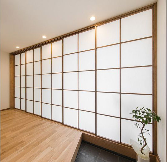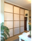 Porte scorrevoli giapponesi futsu Shoji. I riquadri di carta all'interno di ogni anta sono otto, divisi da una bacchetta centrale. Le dimensioni di ogni singolo riquadro sono 31,5x61 cm. Le foto nella gallery sono puramente indicative e non rappresentano il prodotto finale. Se desideri un numero di bacchette interne differente da quello indicato, i tempi di consegna potrebbero allungarsi ed il prezzo andrà calcolato a preventivo. Il telaio in legno è realizzato in abete di Val di Fiemme, di or...