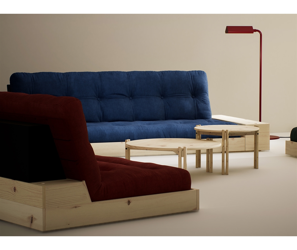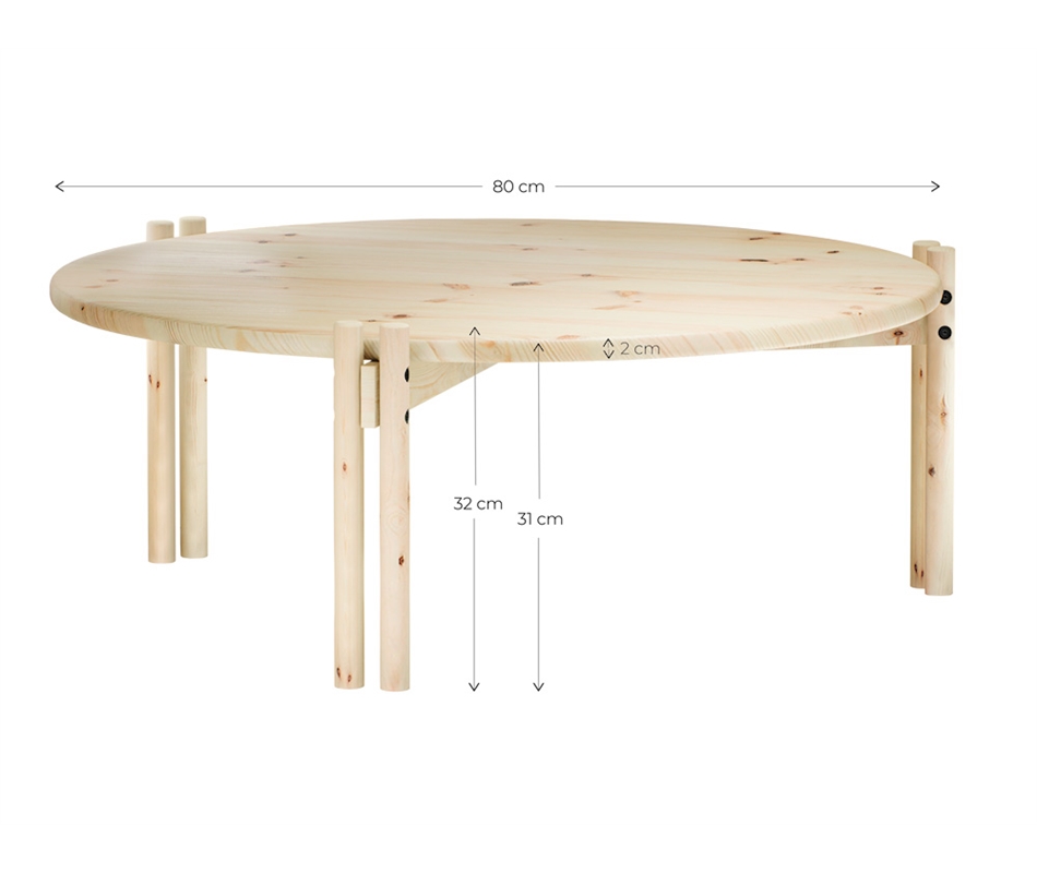 Tavolino realizzato in pino scandinavo massiccio con h 32 e diametro 80 cm. Elegante complemento d'arredo in legno di pino scandinavo, unisce un'elegante estetica minimalista a una silhouette unica, caratterizzata da 3 gambe doppie. Può essere usato singolarmente, oppure insieme al tavolino Sticks High, più alto e piccolo. Verniciato con un rivestimento laccato all'acqua , è disponibile in varie colorazioni.
